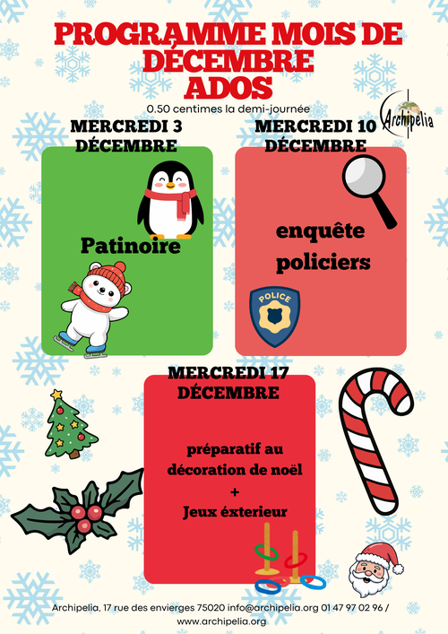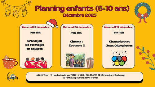 Programme centre de loisirs adolescents (11-14 ans) et enfants (6-10)