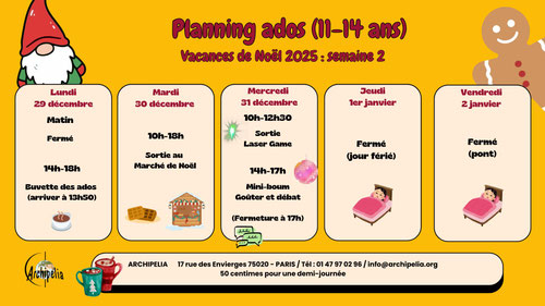 Programme des vacances pour les adolescents (11-14 ans) et pour les enfants (6-10)