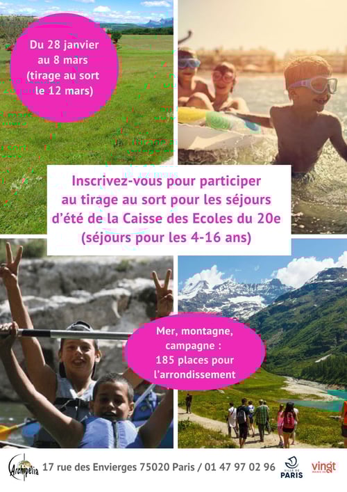 Séjours vacances pour les 4-16 ans avec la Caisse des Ecoles du 20e : du 28 janvier au 8 mars, Archipelia peut vous aider pour participer au tirage au sort !