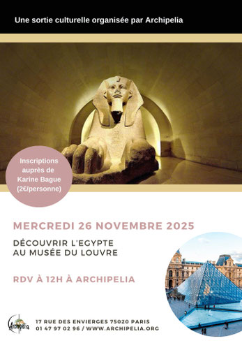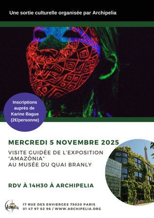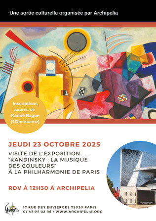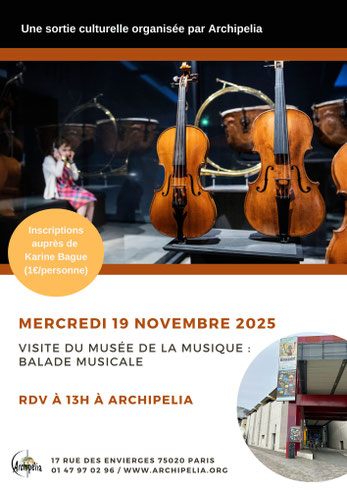 Une fois par mois (voire plus), Archipelia propose une sortie culturelle à ses adhérent·es et bénévoles : théâtre, nocturne dans un musée, concert, opéra, visite guidée dans un quartier de Paris...