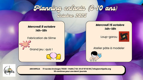 Les mercredis et pendant les vacances scolaires, Archipelia propose des activités de loisirs: