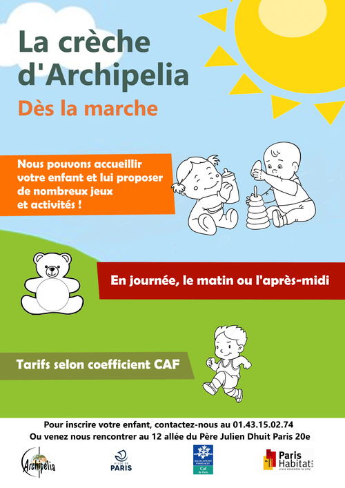 L'inauguration officielle de la crèche multi-accueil d'Archipelia s'est déroulée le mardi 9 décembre 2014, en présence de Frédérique Calandra, Maire du 20e arrondissement, d'Yves Devaux, Président de la CAF de Paris, du Conseil d'administration d'Archipelia, de l'équipe du multi-accueil et de parents dont les enfants sont accueillis dans ce lieu.